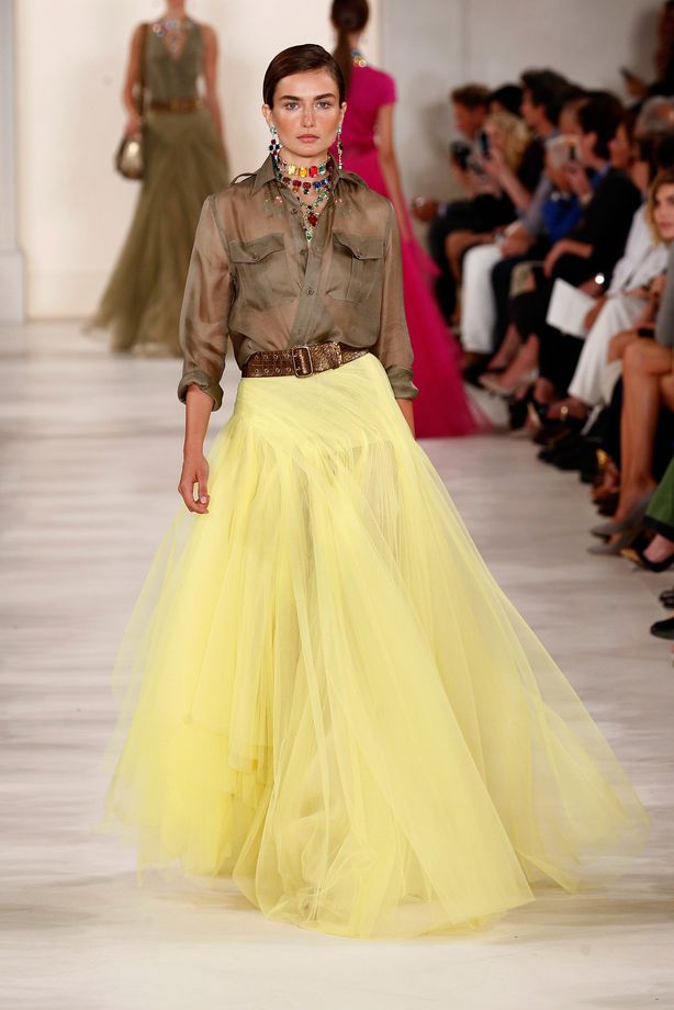 NEW YORK, NY – SEPTEMBER 11: A model walks the runway at the Ralph Lauren fashion show during Mercedes-Benz Fashion Week Spring 2015 at Skylight Clarkson SQ. on September 11, 2014 in New York City. (Photo by Peter Michael Dills/Getty Images for Mercedes-Benz Fashion Week)