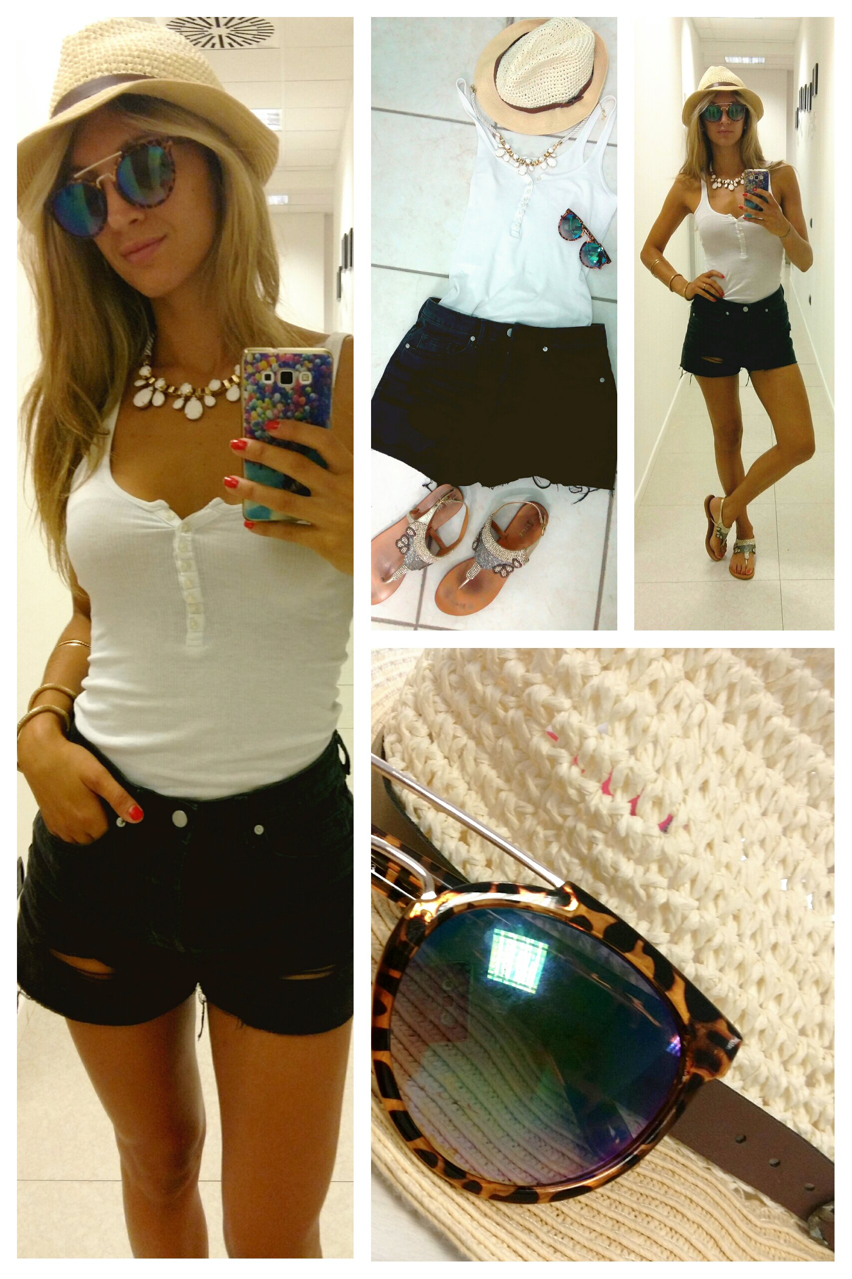 Shorts a vita alta H & M – Accessori Tally Weijl – Scarpe Pin Up – Cappello Calamita – Occhiali da sole Tally Weijl
