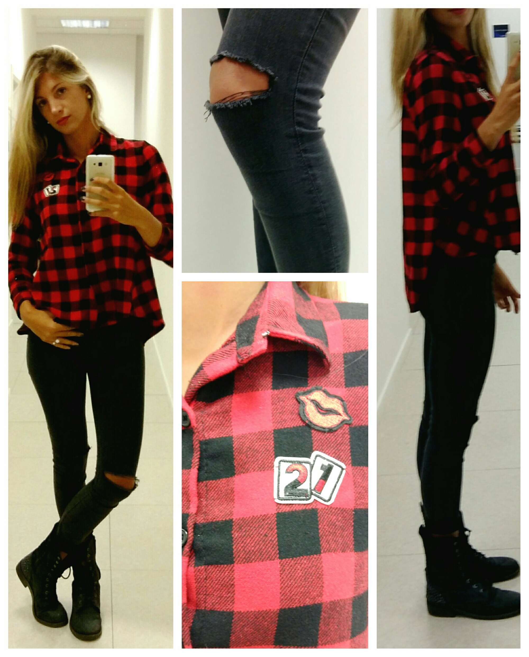 Nella foto del mio look 2 elementi fondamentali dell’autunno inverno 2015/2016, la camicia in tessuto tartan (vedi articolo https://valentinachicshock.com/2015/09/09/tartan-tartan-e-ancora-tartan/ ) e un paio di biker che ci porteremo dietro per tutta la stagione, bassi comodi e total black!