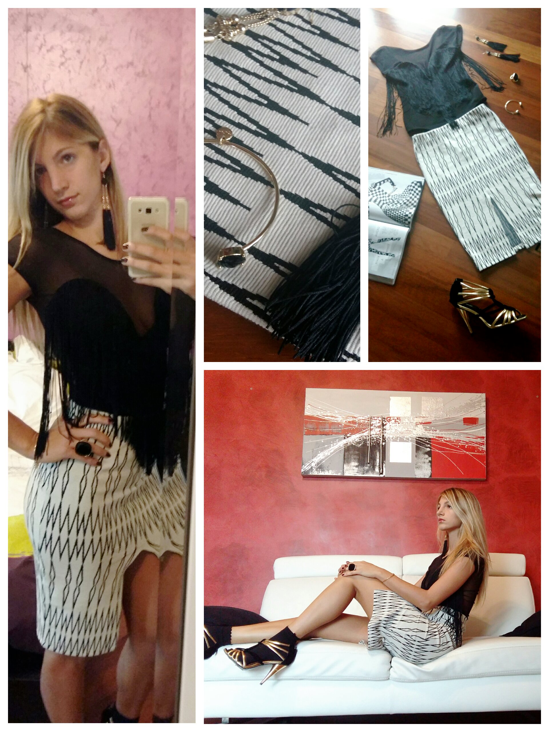 Per il mio look ho scelto una gonna optical con un fantastico body con frange… vi piace? 🙂