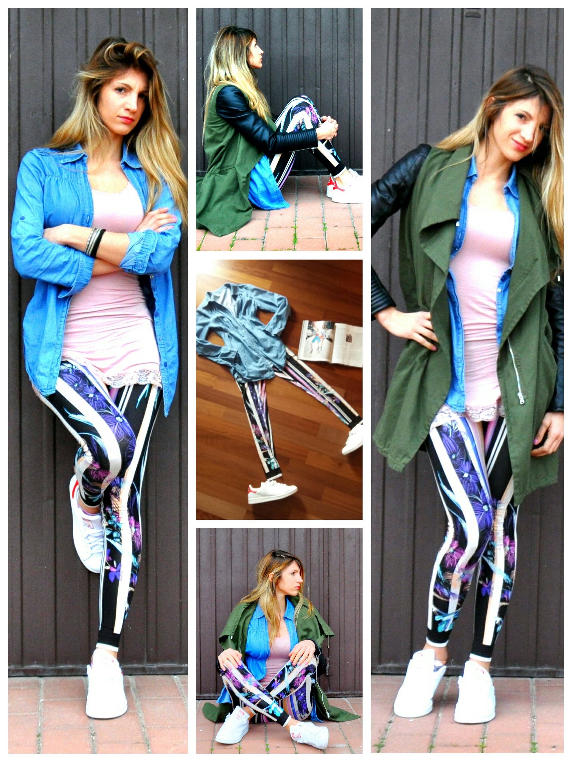 For my outfit I wore the must-have pieces of the season, the parka, the denim shirt, sneakers and the petticoat; i use serenity and pink colors, with the addition of a little ‘of flowers in my leggings with colorful stripes!