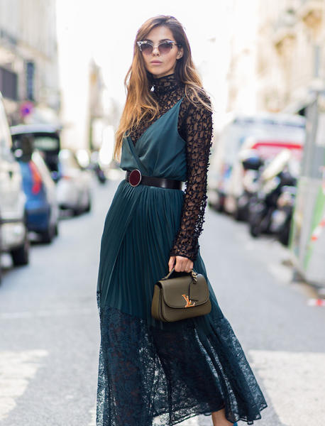 Street Style : Day Two Paris Fashion Week Spring/Summer 2017 Previous Next Publicato 24 gennaio 2017 alle 458 × 600 li La moda… è a strati PARIS, FRANCE – SEPTEMBER 28: Doina Ciobanu wearing a green dress, sheer top, Louis Vuitton bag outside Dries van Noten on September 28, 2016 in Paris, France. (Photo by Christian Vierig/Getty Images)